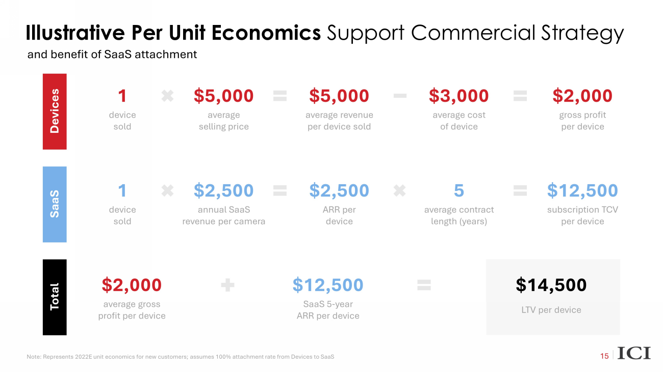 Illustrative Per Unit Economics Support Commercial Strategy 15 Note: Represents 2022E unit economics for new customers; assumes 100% attachment rate from Devices to SaaS device sold a verage selling p rice a verage r evenue per device sold 1 $5,000 $5,000 a verage cost of device gross profit per device $3,000 $2,000 device sold annual SaaS revenue per camera ARR per device 1 $2,500 $2,500 average contract length (years) subscription TCV per device 5 $12,500 Total average gross profit per device SaaS 5 - year ARR per device LTV per device $ 2 ,000 $12,500 $14,500 SaaS Devices and benefit of SaaS attachment